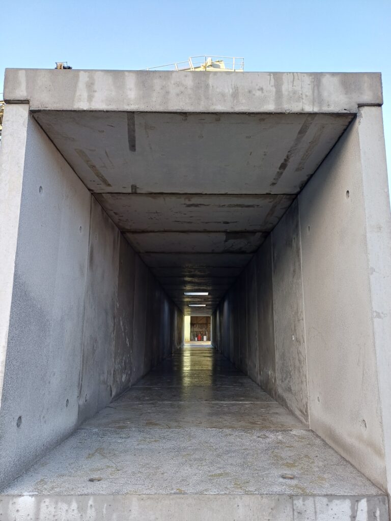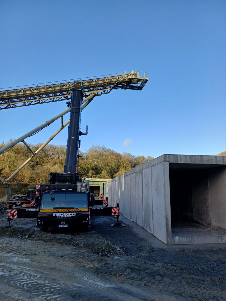 📸 En images ➡️ pose par les équipes Génie Civil de MARC SA des blocs de béton en U préfabriqués pour la création d’un tunnel de 45 m de longueur. Ce tunnel permettra de supporter le stockage de nos matériaux primaires et d’accueillir le tapis de transfert des matériaux vers les installations de broyage et de criblage.